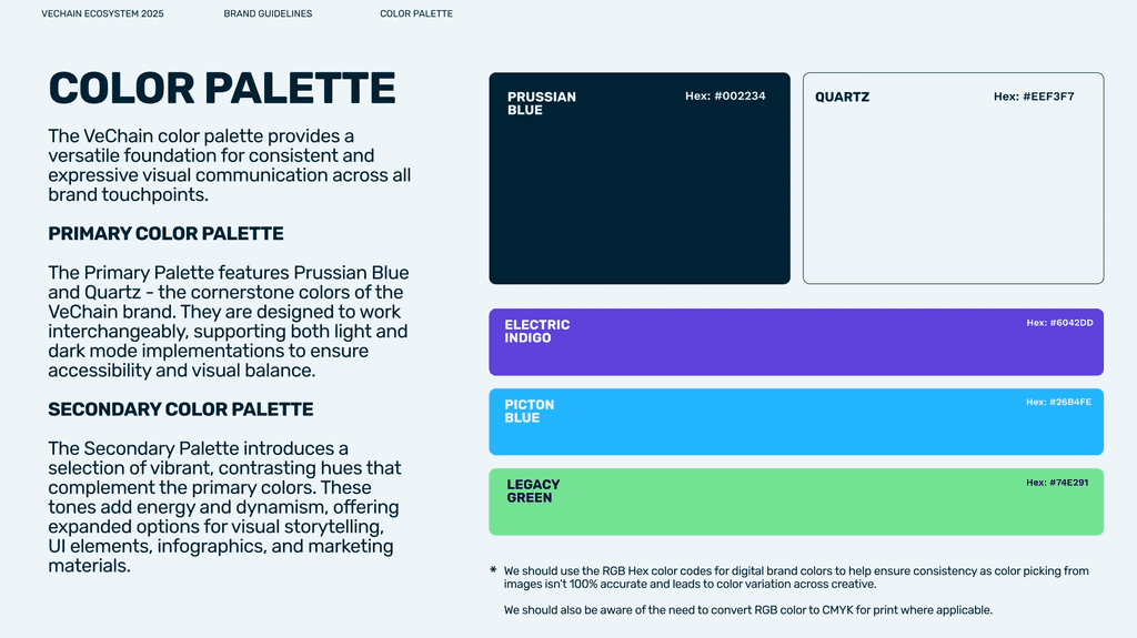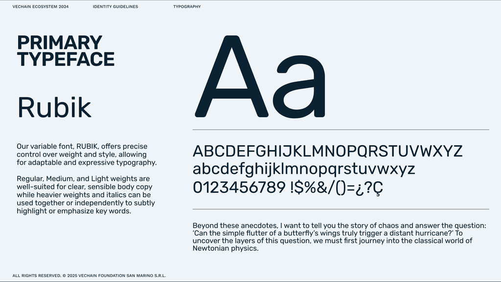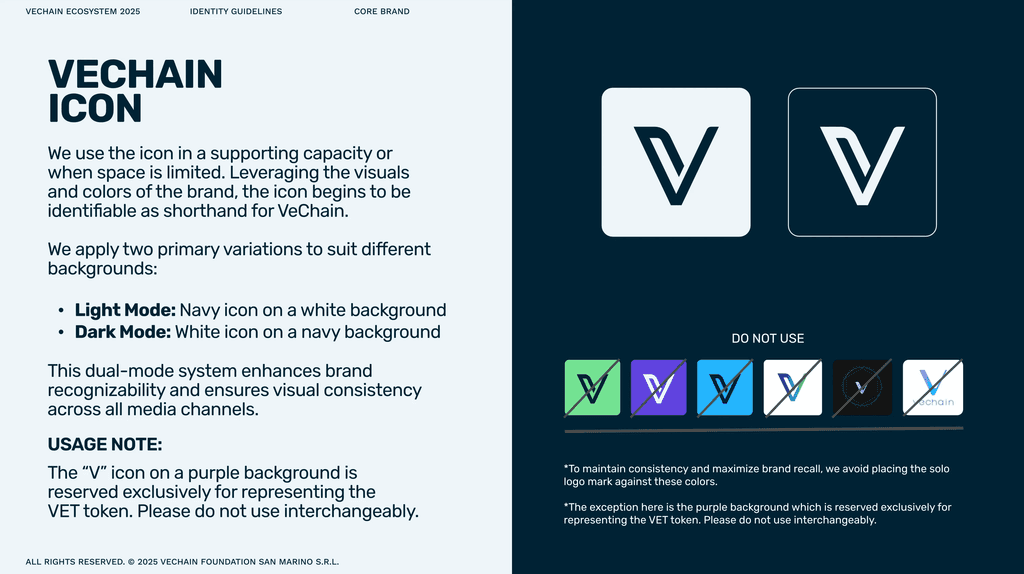 AS SENIOR BRAND DESIGNER AT VECHAIN, I WAS RESPONSIBLE FOR SHAPING A COHESIVE BRAND FRAMEWORK THAT POSITIONED THE COMPANY AS A TRUSTED, FORWARD-THINKING LEADER IN TOKENISED SUSTAINABILITY. TO THIS END, I WORKED TO TRANSLATE COMPLEX BLOCKCHAIN CONCEPTS INTO ACCESSIBLE YET MEMORABLE DESIGN, ENSURING CLARITY AND BRAND CONSISTENCY ACROSS EVERY TOUCHPOINT. THIS INCLUDED DEVELOPING A VERSATILE BRAND FRAMEWORK THAT WAS EASY TO DEPLOY ACROSS CHANNELS, AS WELL AS CREATING LOGOS AND ICONOGRAPHY FOR VECHAIN’S THREE CRYPTOCURRENCY TOKENS (VET, VTHO, AND B3TR). I ALSO LED THE DESIGN AND PRODUCTION OF 3D IMAGERY, SOCIAL MEDIA CONTENT, VIDEO EXPLAINERS, MOTION GRAPHICS, AND EVENT MERCHANDISE - ALL CONTRIBUTING TO A UNIFIED AND RECOGNISABLE VISUAL IDENTITY FOR VECHAIN’S GLOBAL AUDIENCE.